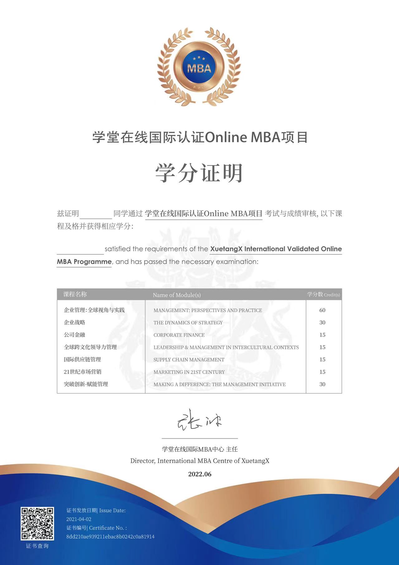 學(xué)堂在線面向國內(nèi)職業(yè)經(jīng)理人推出國際認(rèn)證Online MBA項(xiàng)目,學(xué)制兩年,項(xiàng)目通過線上學(xué)習(xí)、至少八次的線下移動(dòng)課堂及各類型頭部企業(yè)深度訪問學(xué)習(xí)的混合模式修讀8門課程(共11個(gè)模塊)。通過考核的學(xué)員將獲得學(xué)堂在線項(xiàng)目結(jié)業(yè)證書;持有項(xiàng)目結(jié)業(yè)證書,經(jīng)OU審核后可兌換學(xué)分并據(jù)此頒授(英國)開放大學(xué)工商管理碩士學(xué)位