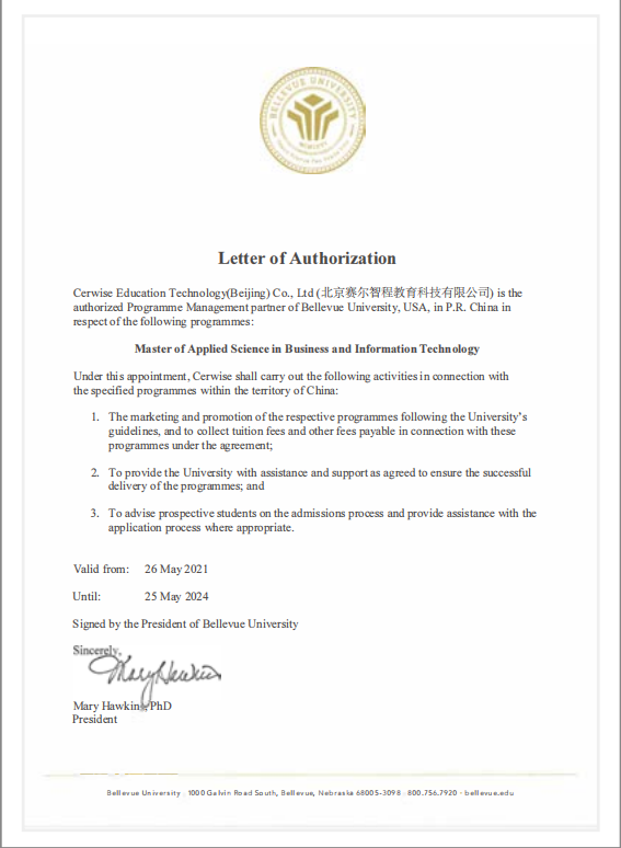 貝佛大學(Bellevue University),又稱貝爾維尤大學,位于美國內布拉斯加州,成立于 1966 年,是一所非營利性大學,在全球擁有近 60,000 名畢業生,是美國國家級信息安全保障教育學術中心(CAECDE),被《高等教育紀事》評為“2021 年最適合工作的大學”,同時被《新聞周刊》列為美國頂級在線大學之一,是獲得五星評級的 75 所院校之一(該獎項是表彰名單的最高譽),連續三年被《華盛頓月刊》評為美國四年制大學排名前十的成人學習大學,位列 US News 在線學士學位 TOP10,美國EMBA 最佳大學 TOP25。