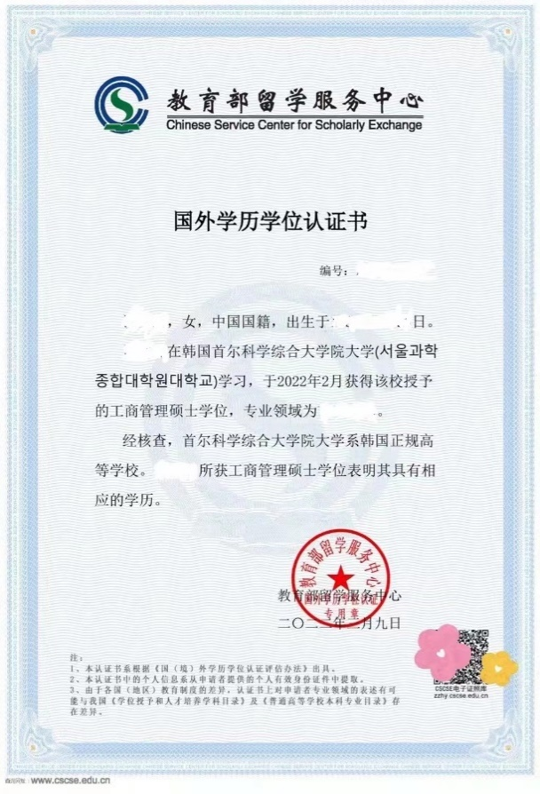 8、按照學(xué)校的學(xué)制安排完成所有學(xué)分的課程學(xué)習(xí),畢業(yè)商務(wù)報告最終審查通過者,即可畢業(yè),獲得中韓兩國教育部均認(rèn)證的全日制碩士學(xué)位證書。