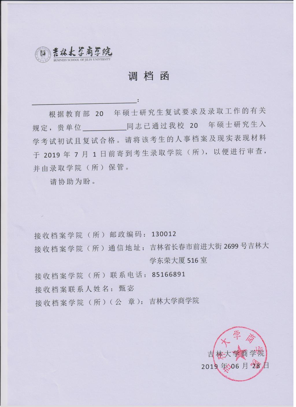 關于吉林大學商學院2019級專業型碩士應屆研究生調檔等事項的說明